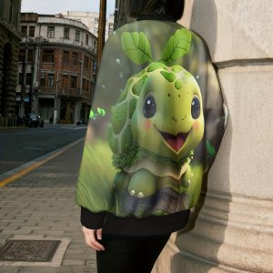 Adorable Hooded Sweatshirt Featuring a Cute Turtle and Green Leaves Print | Designed for Plus-Size Women and Men, Cozy Long-Sleeve Hoodie Perfect for Casual Winter Wear, Crew Neck, Regular Sleeve, Slight Stretch Fabric