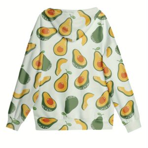 Women’S Avocado Print Hooded Cardigan – 3D All-Over Print Lightweight Sweater, Soft Green & Yellow Avocado Pattern, Cozy Fall Winter Long Sleeve Casual Outerwear, Easy-Care Hoodie for Everyday Outfits