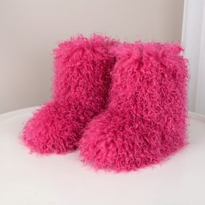 Stylish And Adaptable Flat High-Top Snow Boots Made of faux fur, Perfect for Winter Warmth., Women Shoes