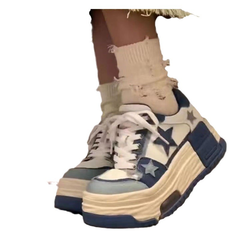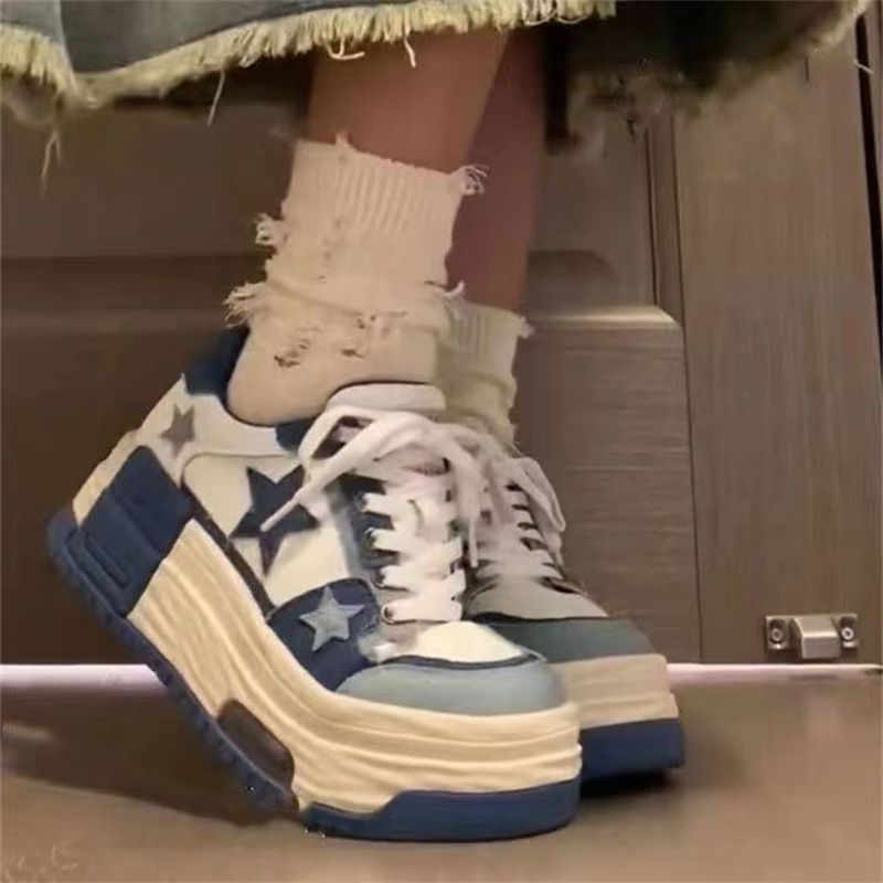 2025 SALAXI Thick-Soled Height-Increasing White Sneakers Women | Trendy Versatile Niche Casual Shoes, Lace-up Closure, Plain Toe, Solid Color, Low Top, All-season, EVA and Fabric Upper, PVC and Sole, Women Shoes