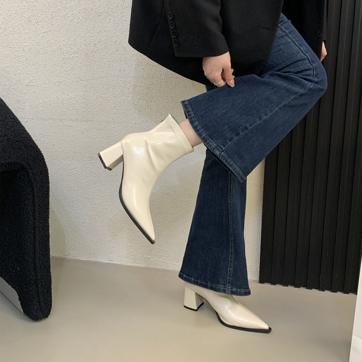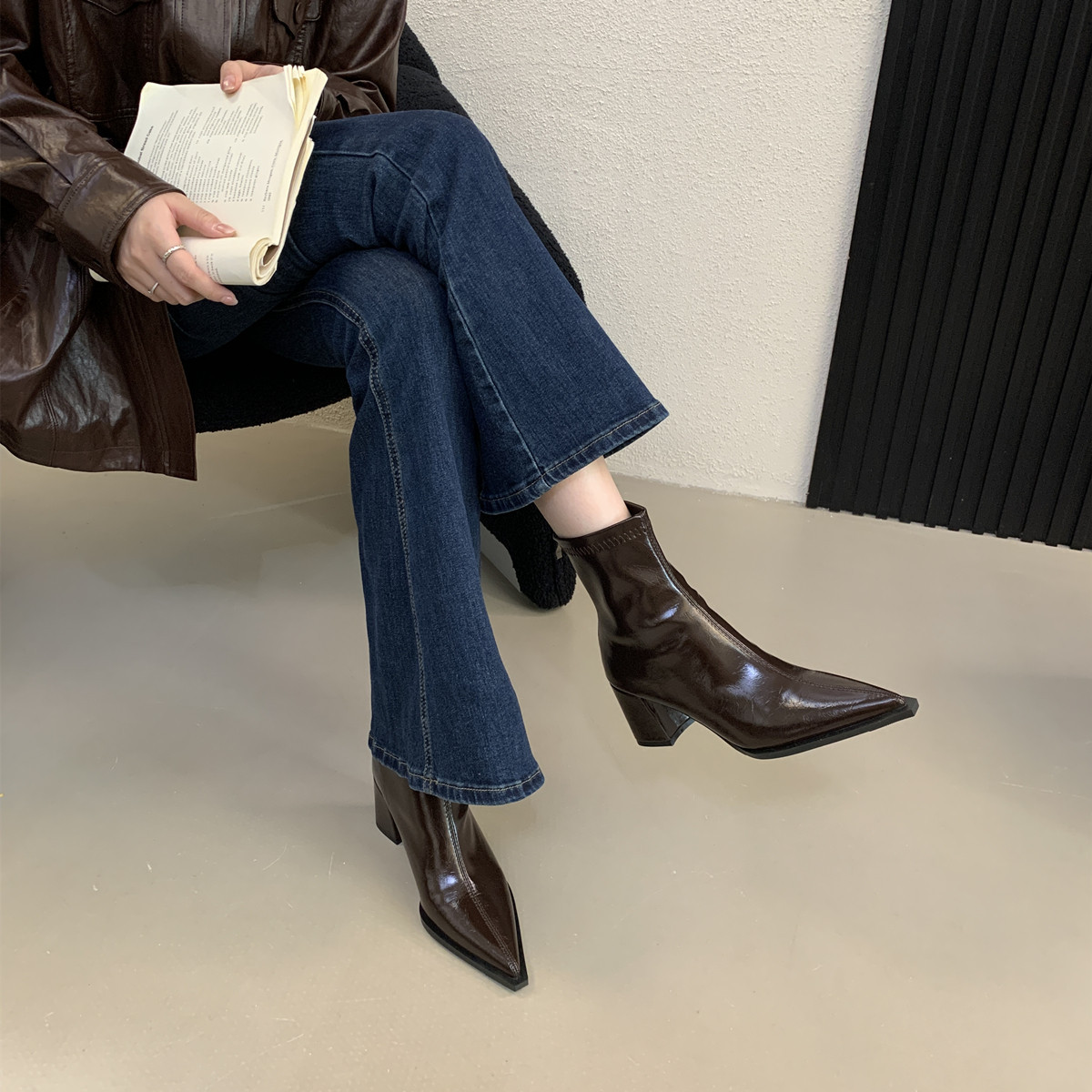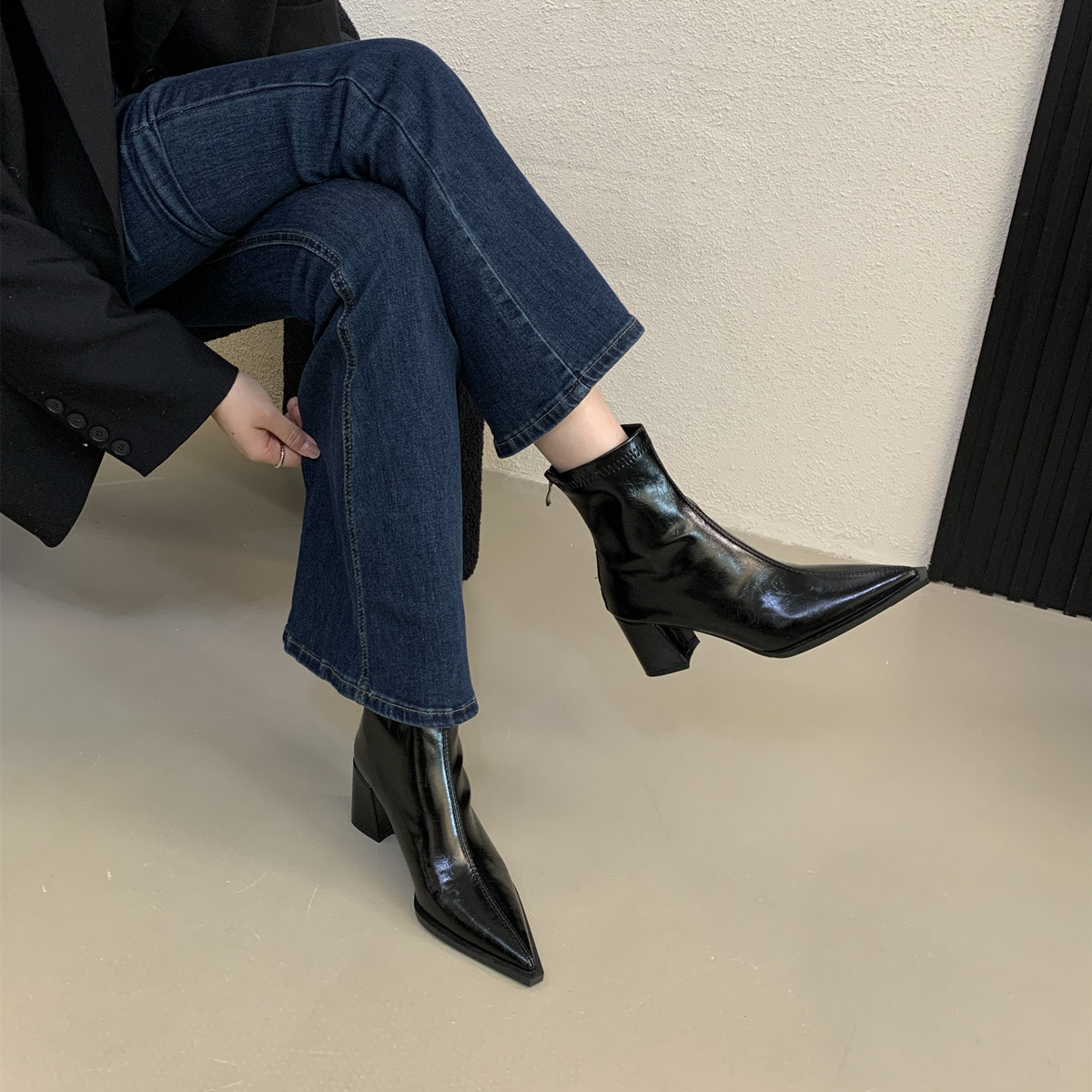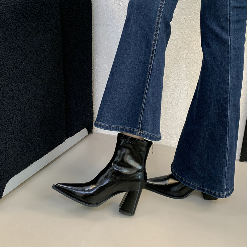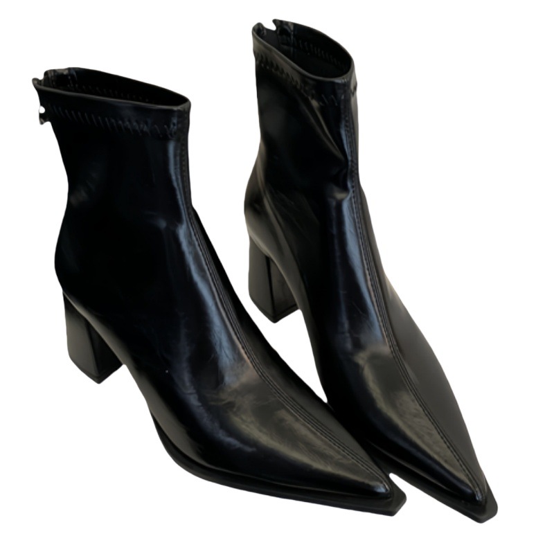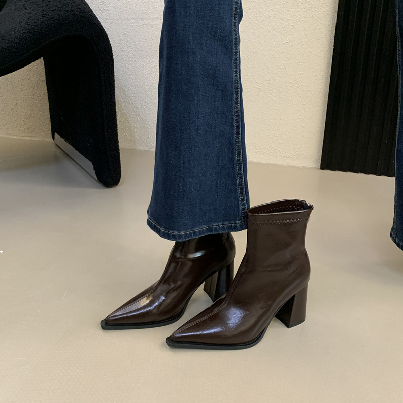 2026 French Retro Pointed Toe Boots | Women’S High Heel Chunky Heel Ankle Boots with Back Zipper, Fleece Lined, Winter Booties, Slender Leg, Fashion Boots, Solid Color, Polyurethane Upper and Inner Material, Fabric Insole, Rubber Sole, Women Shoes