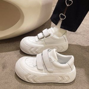 Hong Kong Style White Thick-Soled Dad Shoes for Women | 2025 New Autumn Winter Student Retro Sneakers, Lace-up, Round Toe, Polyurethane Upper, Lining, Rubber Sole, Low Top, All-season, Women Shoes