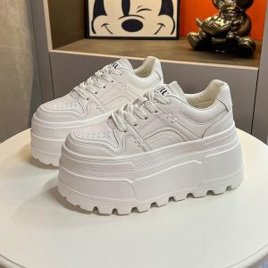 Local Warehouse Women’S White Platform Sneakers | Fashion Casual Shoes, Lightweight Comfortable Lift, Lace-up Closure, Round Toe, Polyurethane Upper, Fabric Lining, EVA Insole, Rubber Sole, All-season Use, Women Shoes
