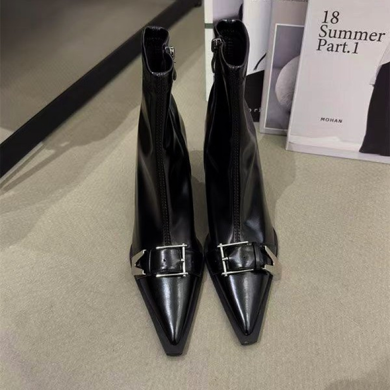 Be the first to review “Pointed Toe High Heel Boots Women | 2026 Autumn Winter New Trendy Cool Metal Professional Boots, Thin Mid Heel, Zipper Closure, Fabric Upper and Sole, Women Shoes”