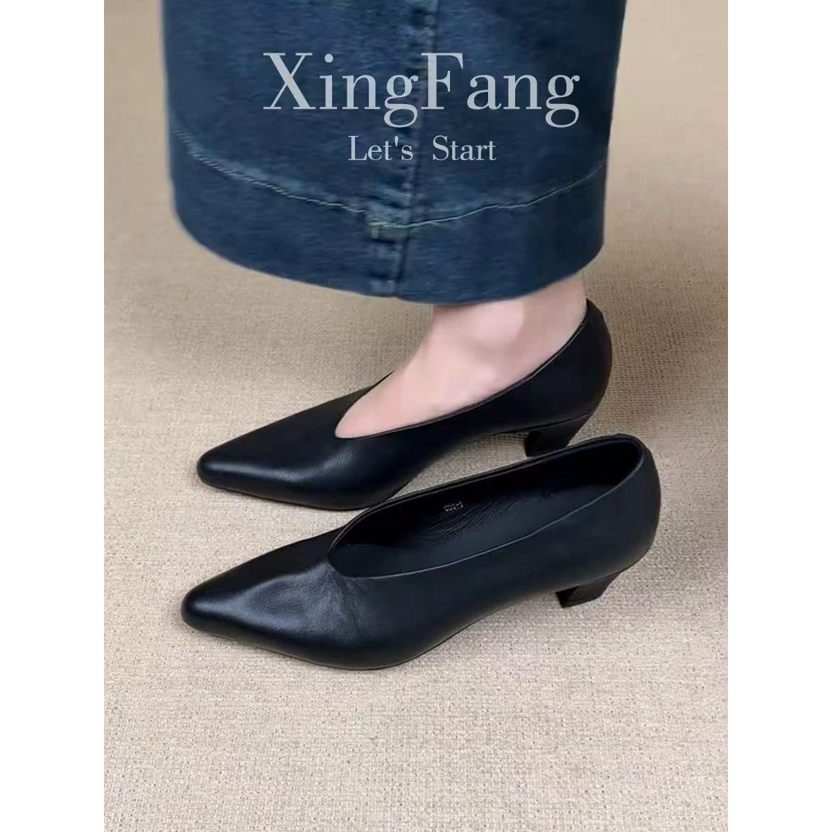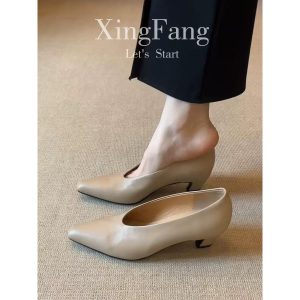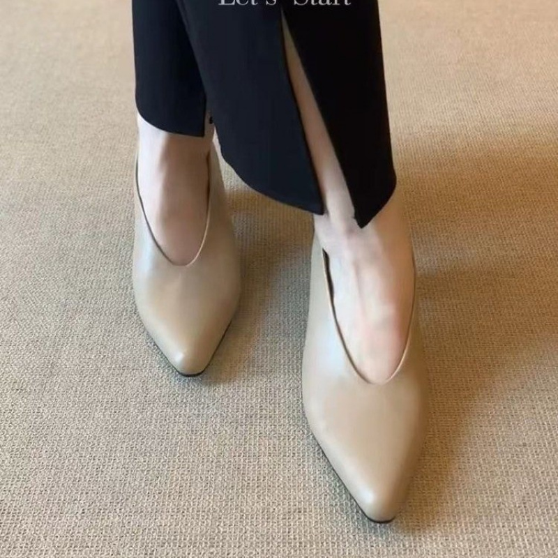 - Slip-On Pointed Toe High Heels Women 2025 Autumn Winter New Shallow Mouth French Retro Minimalist Fashion Chunky Heel Women Boots, Women Shoes