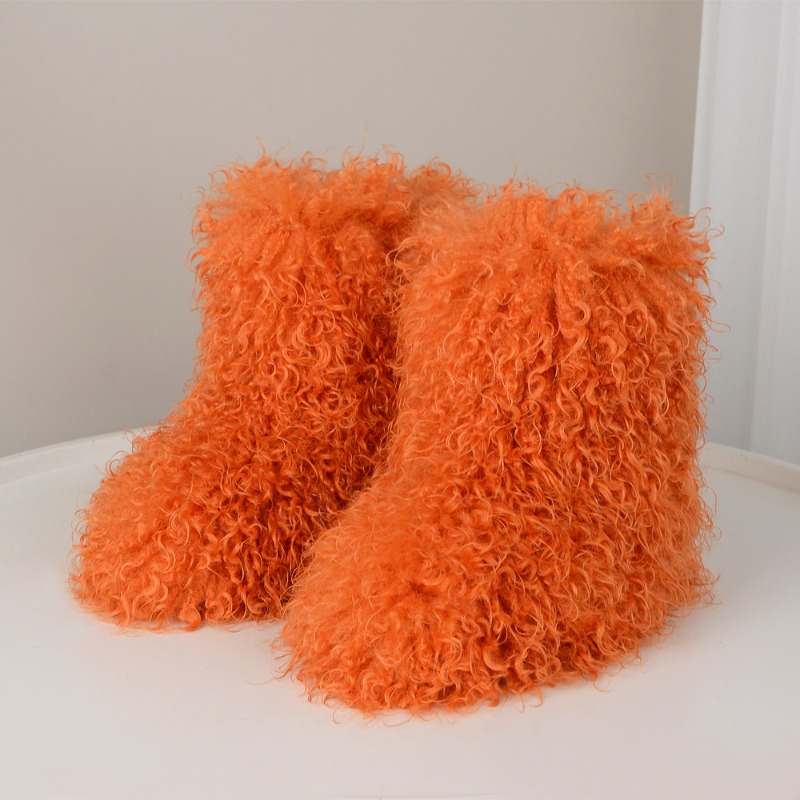 Stylish And Adaptable Flat High-Top Snow Boots Made of faux fur, Perfect for Winter Warmth., Women Shoes