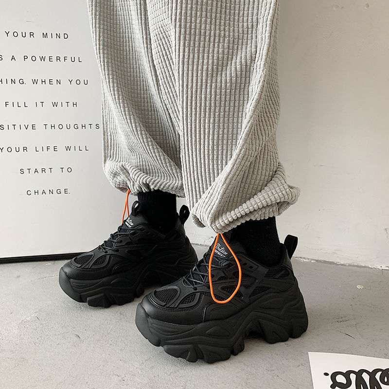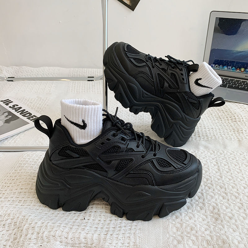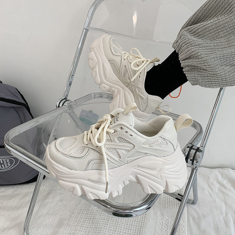 Thick-Soled Height-Increasing Dad Shoes for Women | 2025 Autumn New Korean Fashion Student Casual Sneakers, Lace-up Closure, Plain Toe, Solid Color, Low Top, Upper, Mesh Inner, Rubber Sole, Hand Wash or Professional Dry Clean, Women Shoes