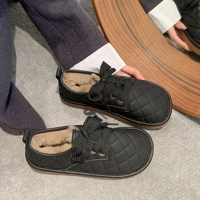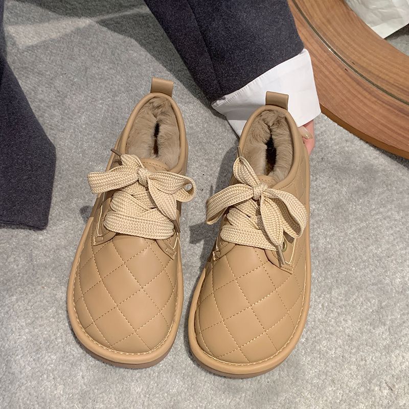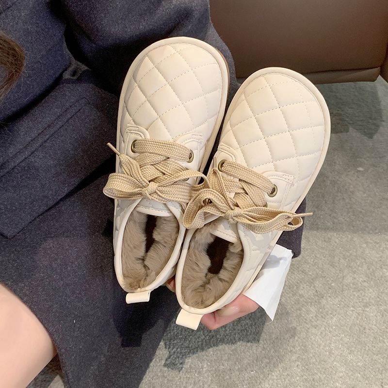 Women 2026 Low-top Furry Snow Boots | Thick-soled, Warm, Thickened, Casual Style, Lace-up Closure, Round Toe, Polyurethane Upper, Superfine Fiber Lining, Rubber Sole, Women Shoes