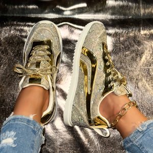 Women’ Chunky Sneakers with Thick Platform Sole & Non-Slip Sole – Round Toe Low-Top Breathable Fabric Lace-Up Walking Shoes Suitable for Casual, Casual Attire, Gym, Office – Cushioned Insole & – Versatile Footwear, Women Shoes
