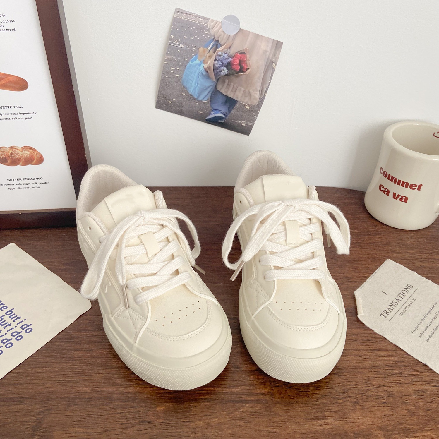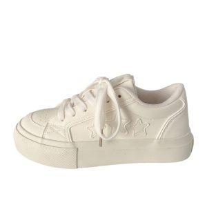 Women’ Milky White Chunky Platform Sneakers – Low-Top Lace-Up Round Toe Traction Sole, Thick Cushioned Sole Suitable for Sports,, Casual Attire, – Versatile Casual Shoes, Women Shoes