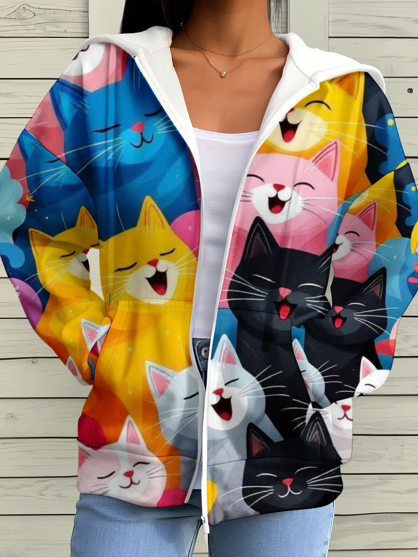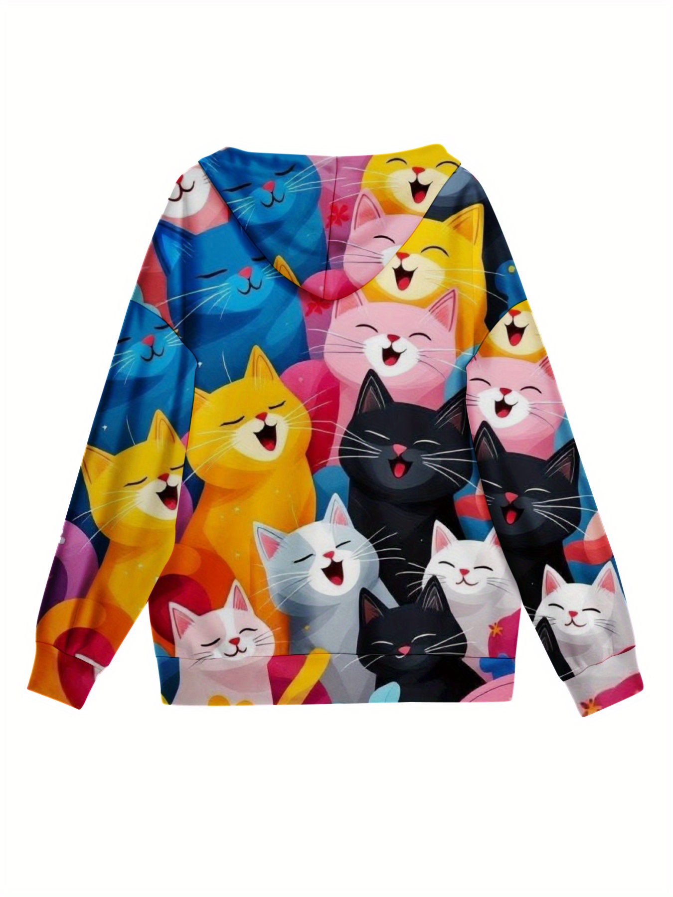 Women’S 3D Printed Cat Face Hooded Cardigan Jacket – Lightweight Cozy Sweater with Expressive Smiling, Surprised & Angry Cat Patterns, Long Sleeve Winter Warmth, Casual Outerwear for Cat Lovers (Autumnu002FWinter) – Playful Cat-Themed Sweater with Rando