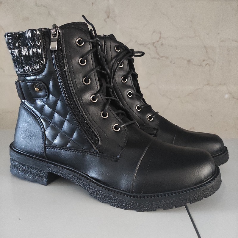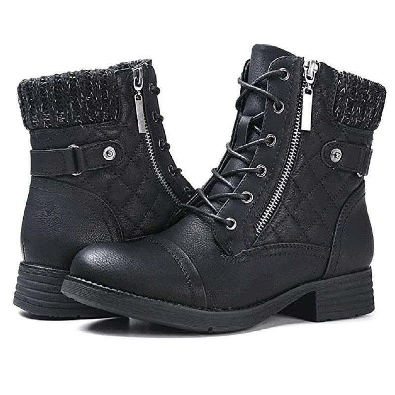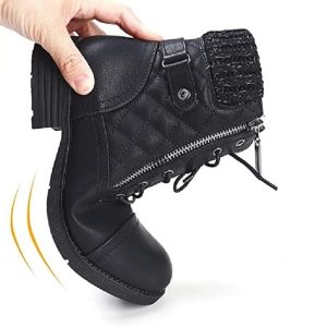 Womens Boots Chunky Ankle Boots with Belt Strap and Side Zipper, Flat Warm Winter Shoes Fashion Comfortable Fall Boots, Women Shoes