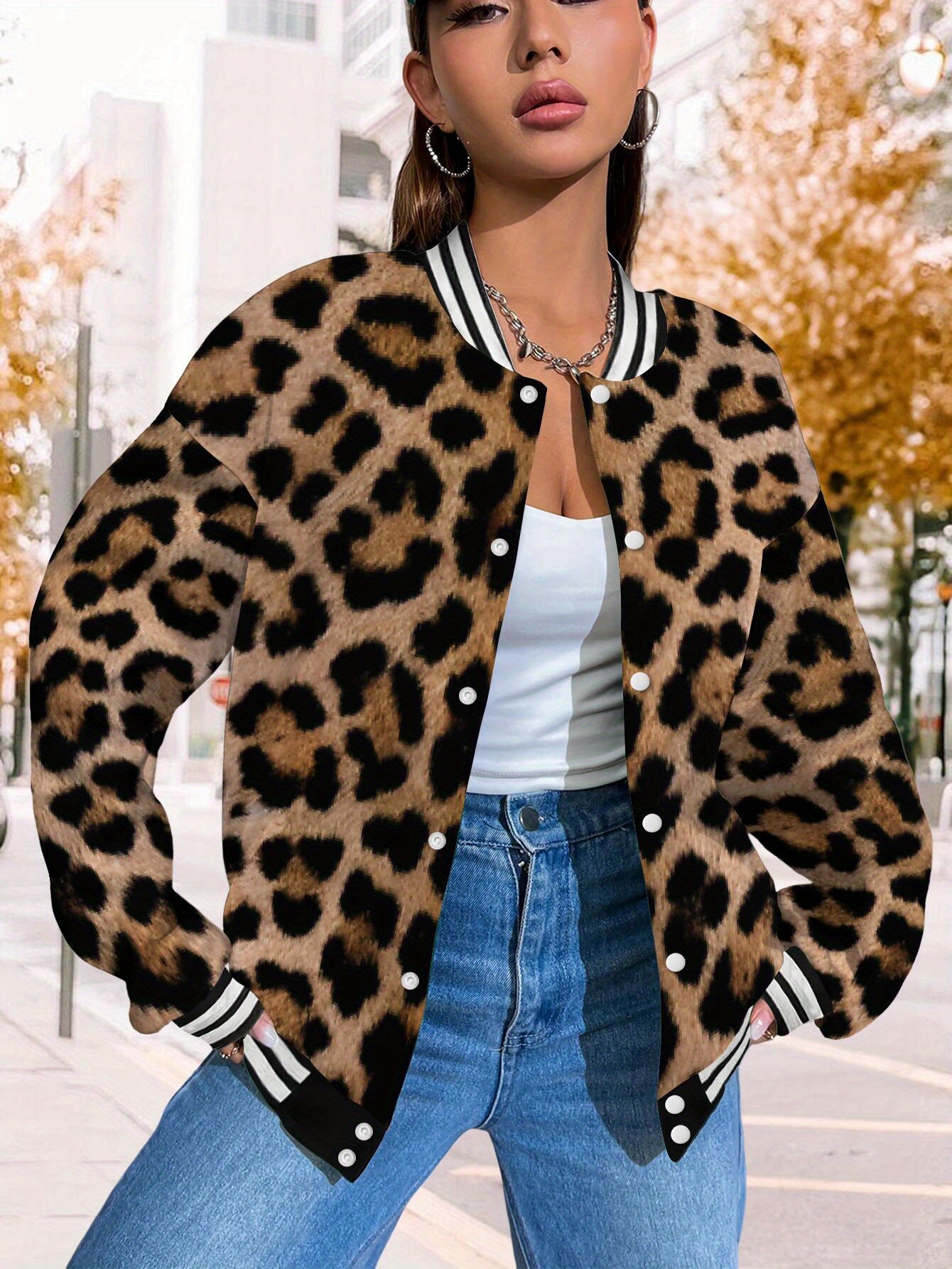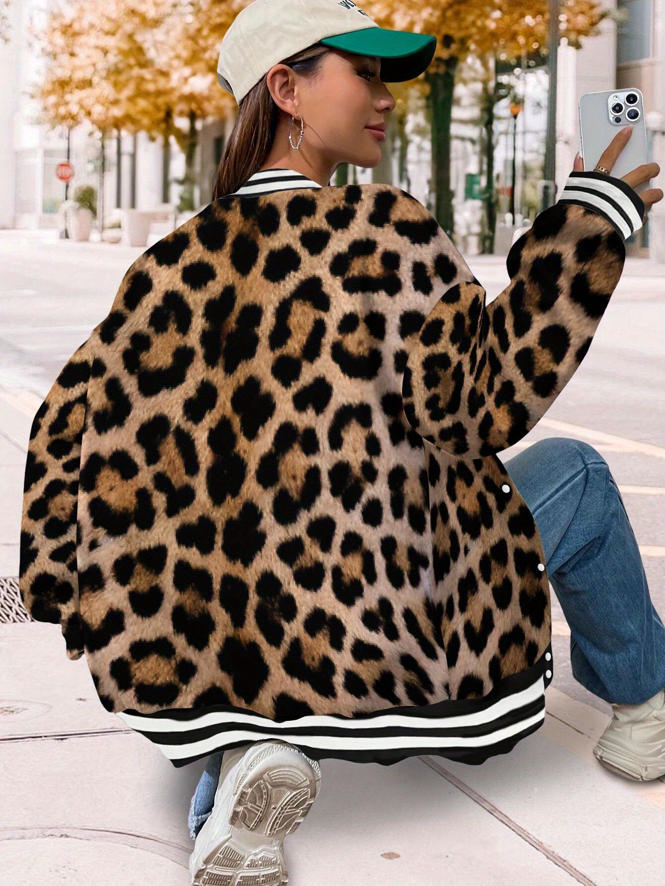- Women’S Leopard Print Baseball Shirt Long Sleeve Sweatshirt | Fashion Animal Print, Plus Size Casual Crew Neck T-Shirt with Double Button Details