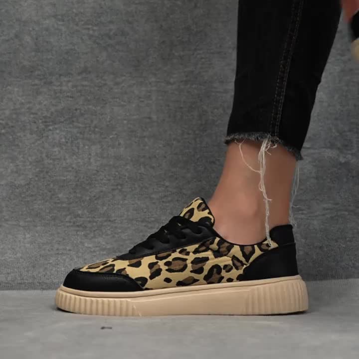 Women’S Leopard Print Casual Sports Shoes | Lightweight, Fashionable Lace-up Low-Top Sneakers with Breathable Midsole Cushioning and Arch Support, Suitable for Gym and Office, Comfortable and Durable All Year Round, Women Shoes