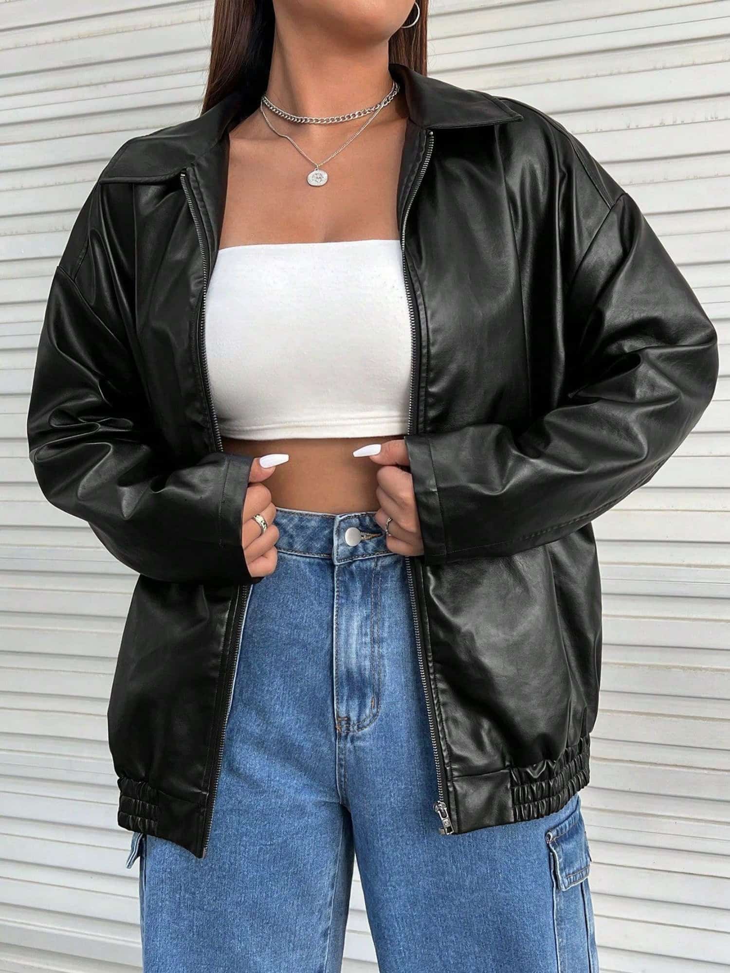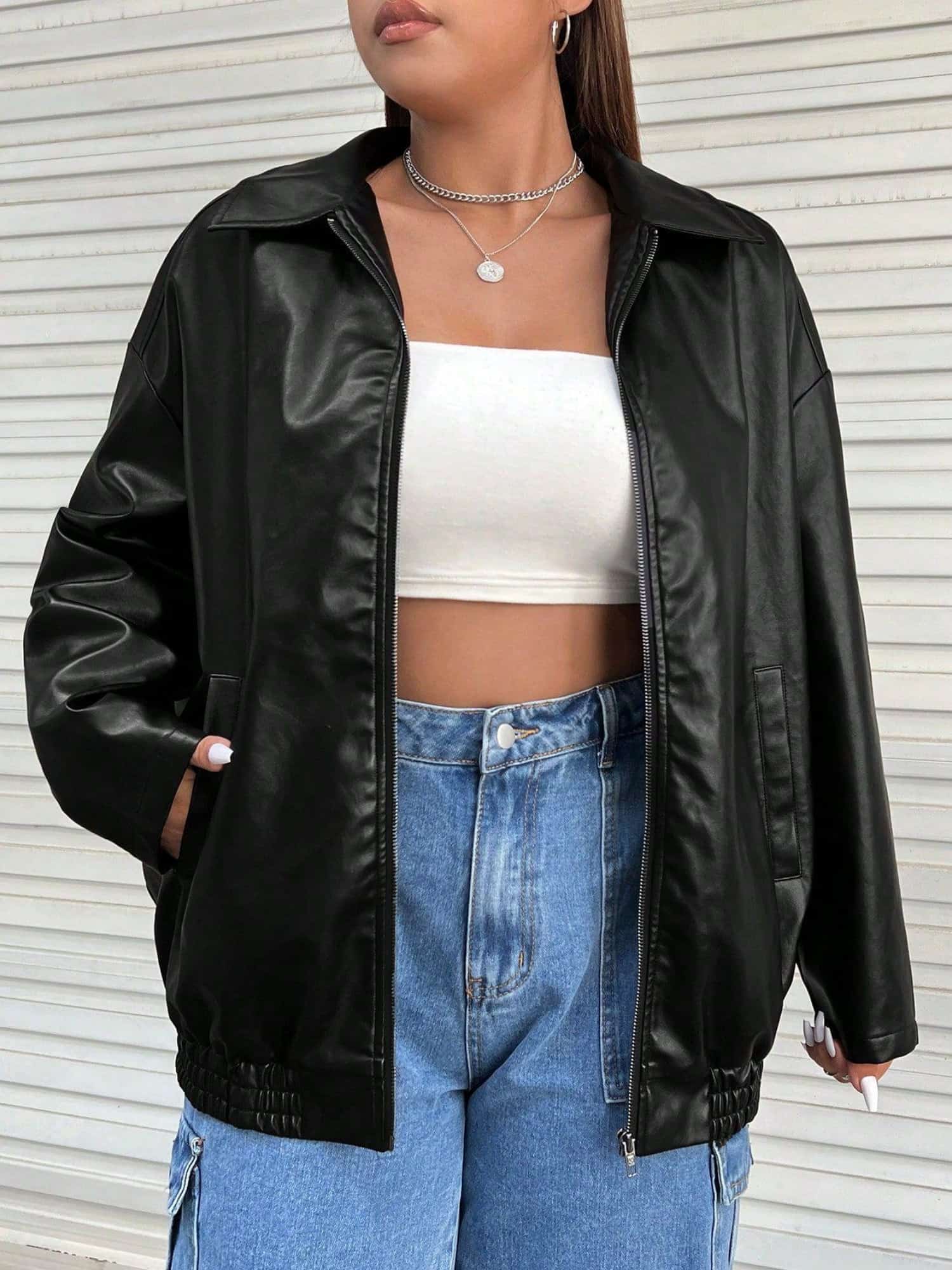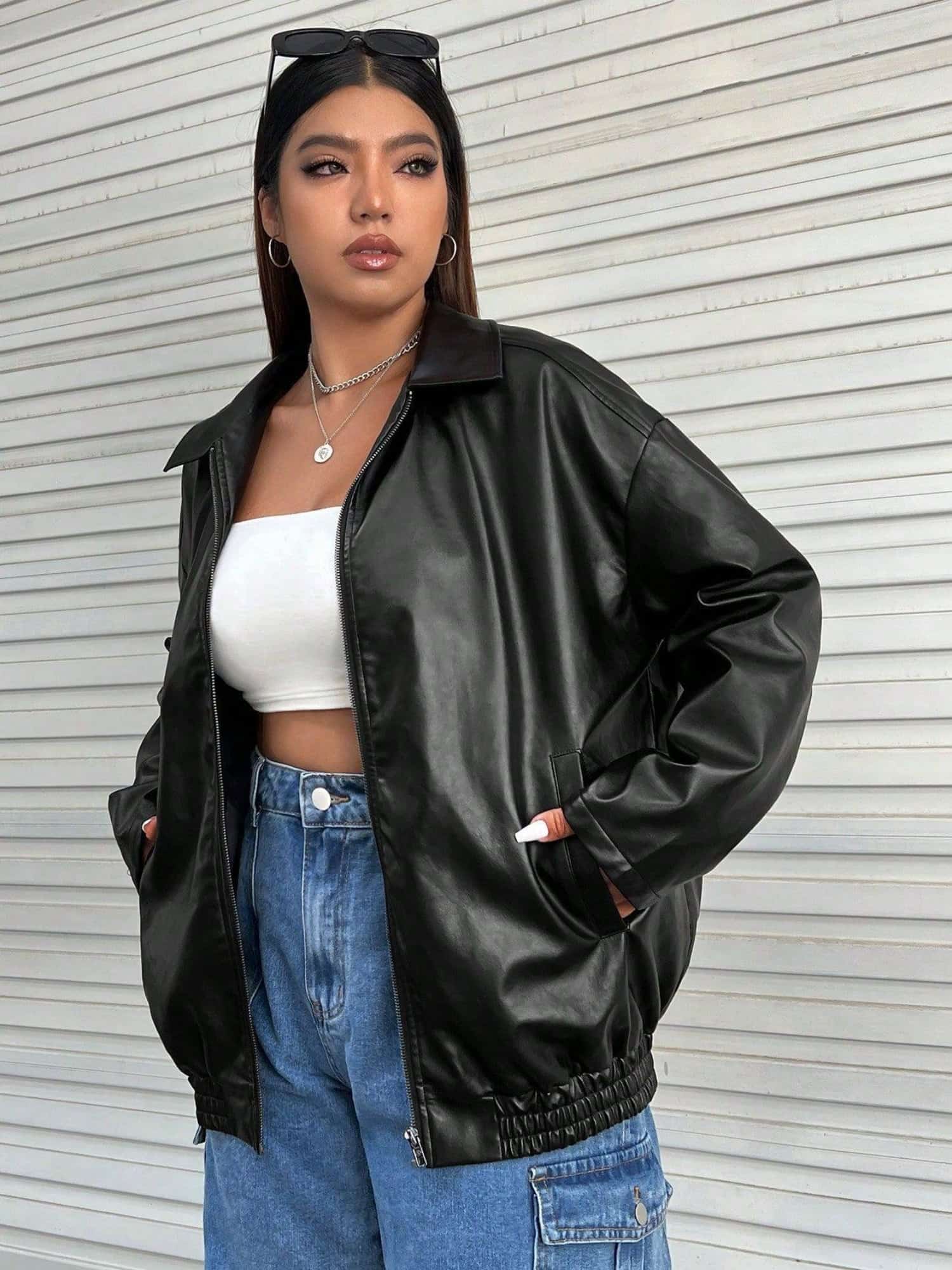 - Women’S Plus Size Oversized Black PU Jacket – Thick Warm Winter Coat with Full-Zip Closure, Non-Stretch Structured Fit for Curvy Figures
