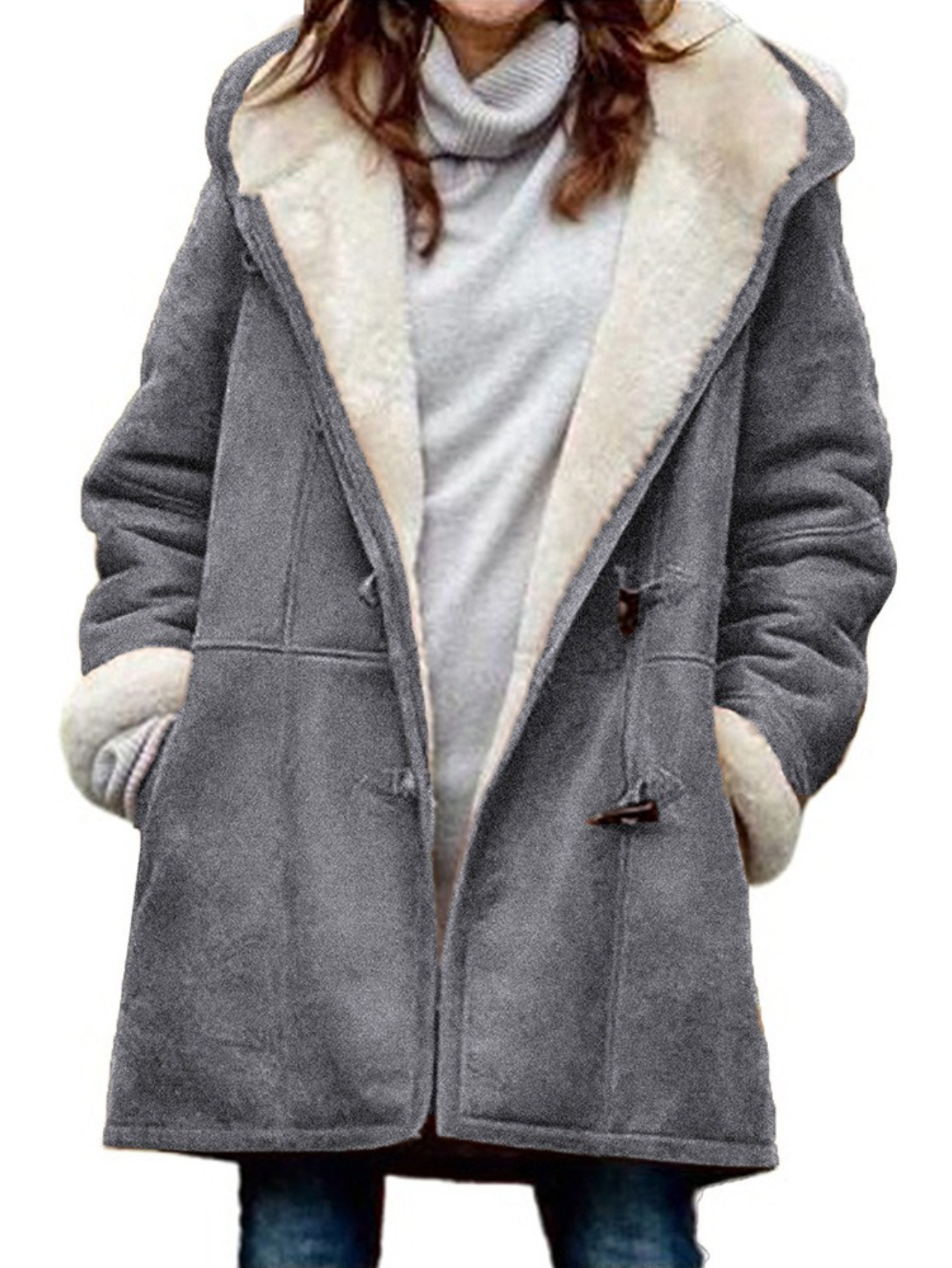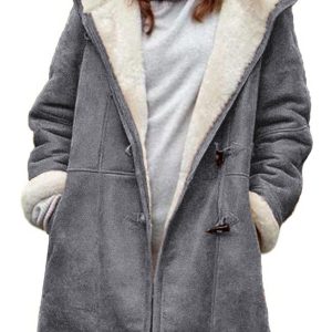 Women’s Plus Size Winter Windbreaker Jacket with Furry Collar & Stand – Warm Cozy Button-Front Closure Outerwear, Solid Color Casual Winter Coat with Pockets (Dry Clean Only) for Cold Weather, Non-Stretch Blazer for all Light Beige Tones