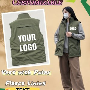 Fleece Vest Jacket Customizable Fleece Vest for Teams & Events – Unisex Stand Collar Sleeveless Jacket | Work, Club, Volunteer, Festival Promotion | Casual, Fallu002FWinter, Multiple Colors
