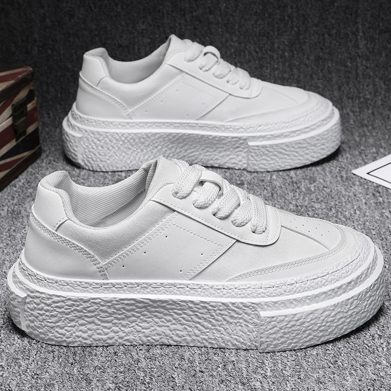 Women’S White Thick-Soled Platform Sneakers | Breathable Height-Increasing Versatile Casual Shoes with Lace-up Closure, Solid Color, Low Top Design, All-Season Use, Women Shoes